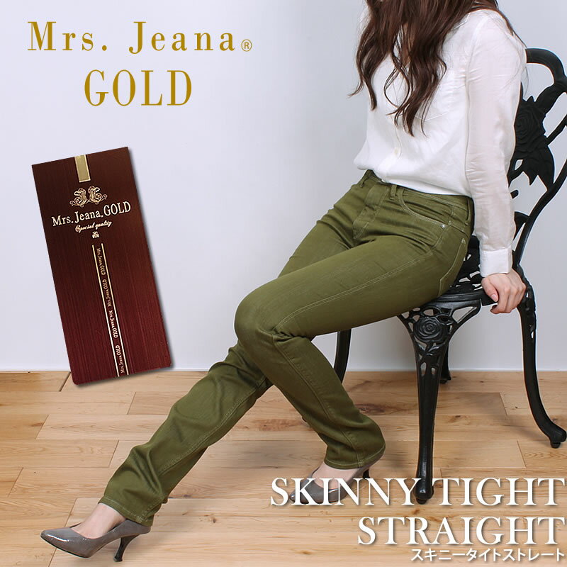 【SALE】カラースキニー タイトストレート お尻が上がって見える特殊パターン+ステッチ♪Mrs.JeanaGOLD/ミセスジーナ/ミセスジーンズ/ゴールド/GM-3162GM3162_58_26【RCP】アクス三信/AXS SANSHIN/サンシン