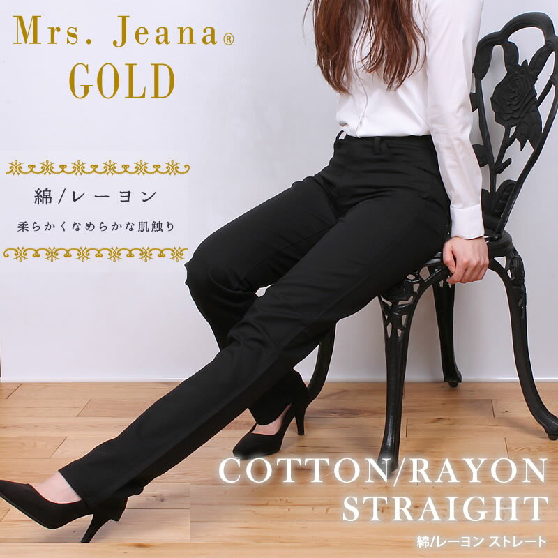 【SALE】綿/レーヨン ストレート/股上深め/カラーパンツ/ブラック/ストレッチMrs.Jeana GOLD/ミセスジーナ/ミセスジーンズ/ゴールド/GM-3472MrsJeana--GM3472_80_05_08
