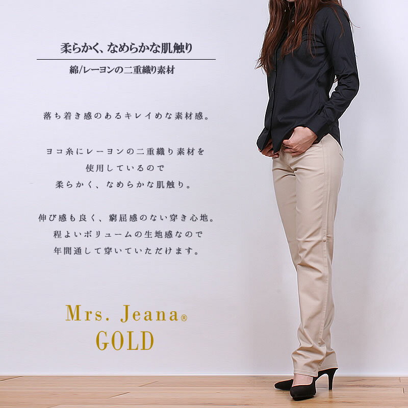 Mrs.JeanaGOLD ミセスジーナ 涼やか 綿麻抗菌防臭加工 サマーディナーストレート Mrs.Jeana/ミセスジーンズ/ゴールド/GM-3982MrsJeana--GM3982_33_81_08【¥13000(本体)+税】