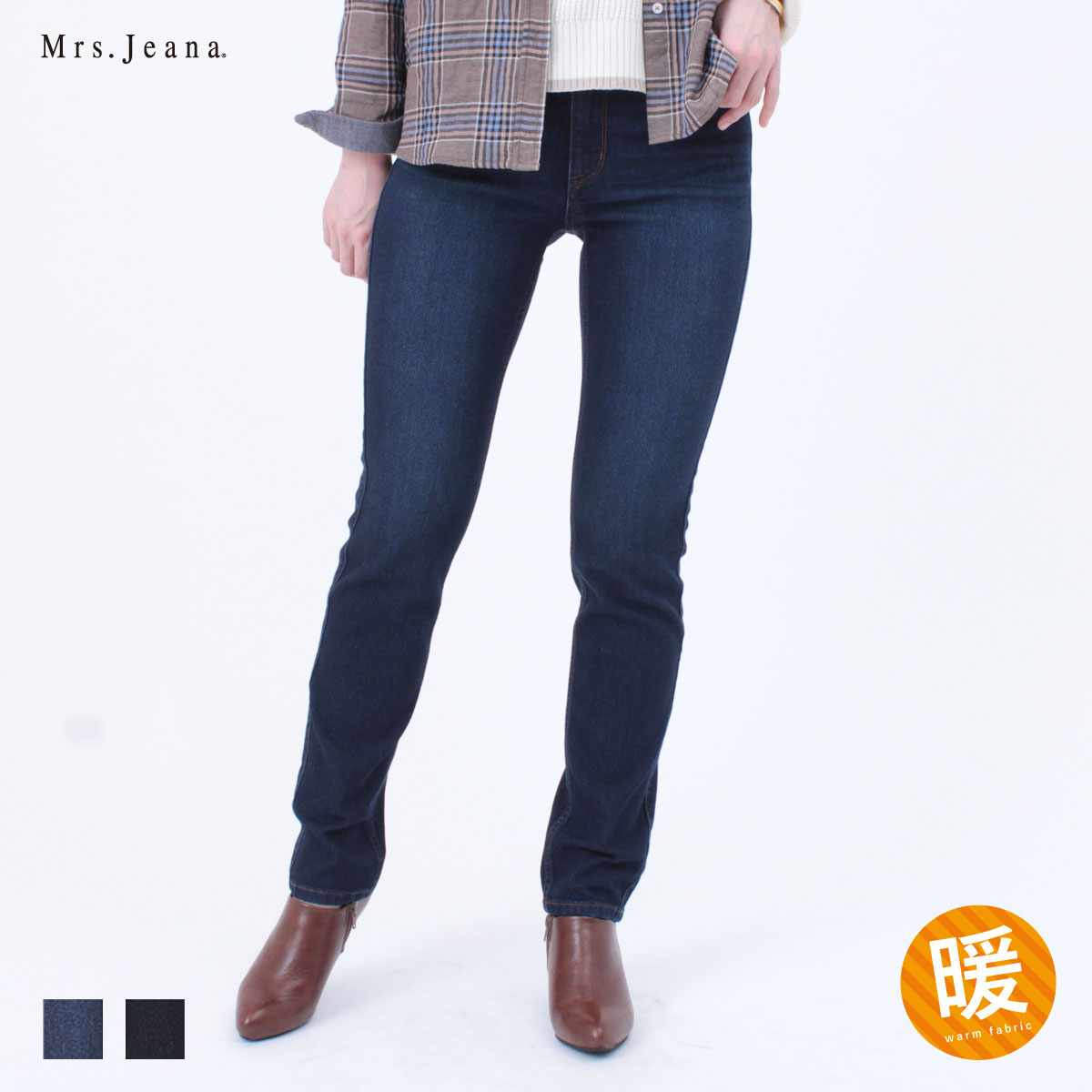 【30%OFF】 Mrs.Jeana ミセスジーナ ■暖■ 裏起毛ストレッチデニム ストレート レディース ジーンズ ストレート 暖か あったか 裏起毛 58-70cm デニム ワンウォッシュ 濃色 ストレッチ 股上深め ミセス きれいめ [秋冬] [SALE] MJ4592