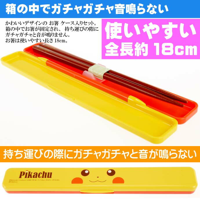 送料無料 ポケモン ピカチュウ 音の鳴らない箸 ケース付 ABC3 キャラクターグッズ 子供用お箸 ケース付 ポケットモンスター Sk068