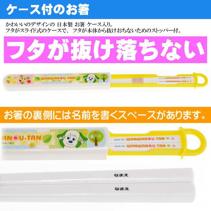 NHK いないいないばあっ 食洗機OK お箸 スライド式ケース入り SKATER(スケーター)キャラクターグッズ 入園 入学 グッズ 用品 給食セット 4973307338816 ABS2AM ワンワン うーたん のデザインの 日本製 お箸 ケース入り。