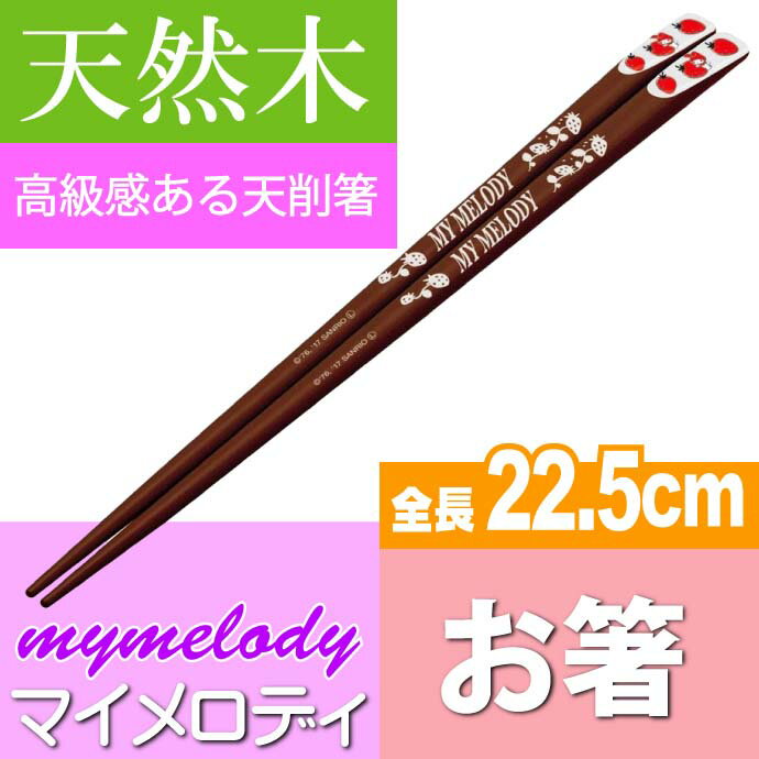 送料無料 マイメロディ 天削箸 天然木 全長22.5cm ANTS45 キャラクターグッズ 大人 子供用お箸 Sk1180