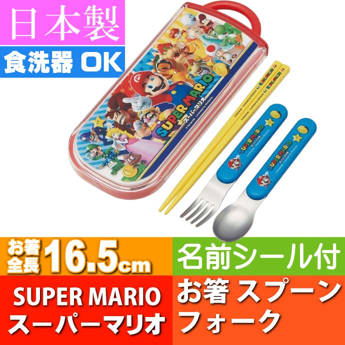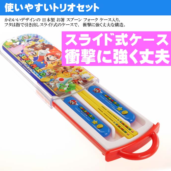 送料無料 スーパーマリオ お箸 スプーン フォーク ケース付 TCS1AM キャラクターグッズ トリオセット 給食セット 子供用お箸 Sk1149