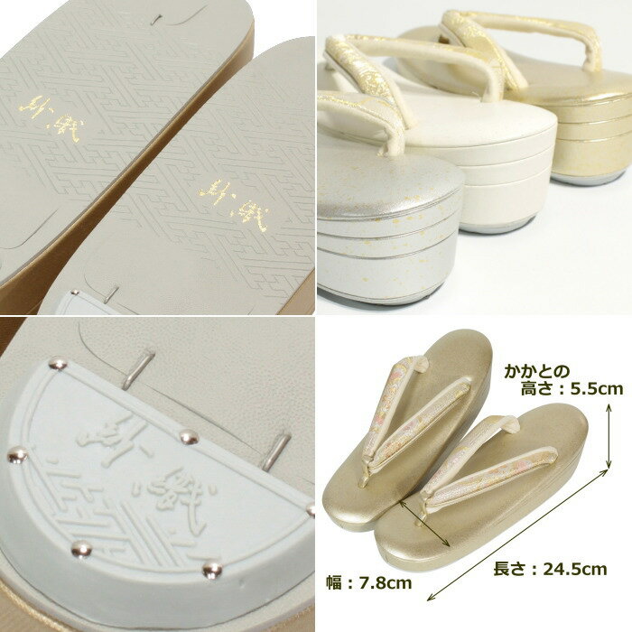 鼻緒は帯地を使用した高級感のある作りで、かかとは、礼装用の三枚芯。